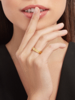 B. The zero1 series essential ring is made of 18K gold and set with a single diamond. showcasing the elegant style rooted in Bvlgari’s Roman tradition. This ring adheres to the aesthetic style essence of the series. reinterpreting the prestigious brand logo and embodying unique and classic design elements. This versatile piece can be easily layered to create various modern and timeless styles. cleverly showcasing your personal style.