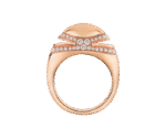 Bvlgari Cabochon 18K rose gold ring adorned with semi dense diamonds