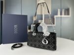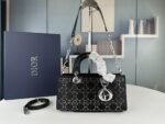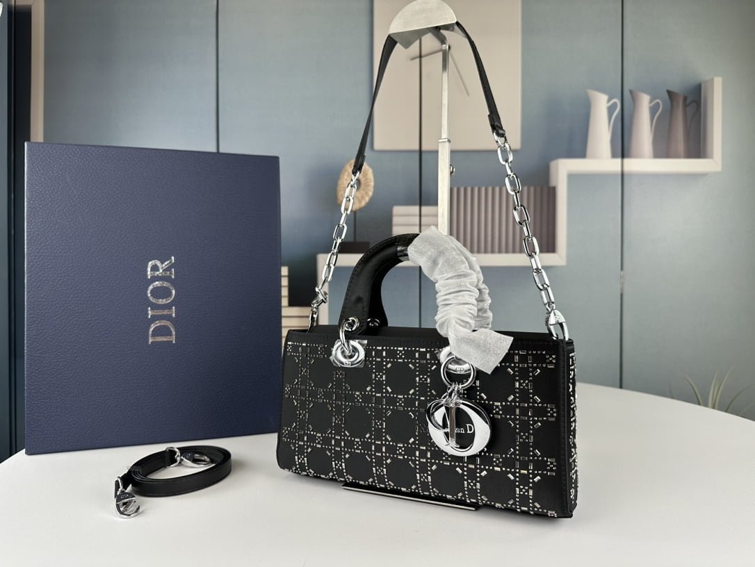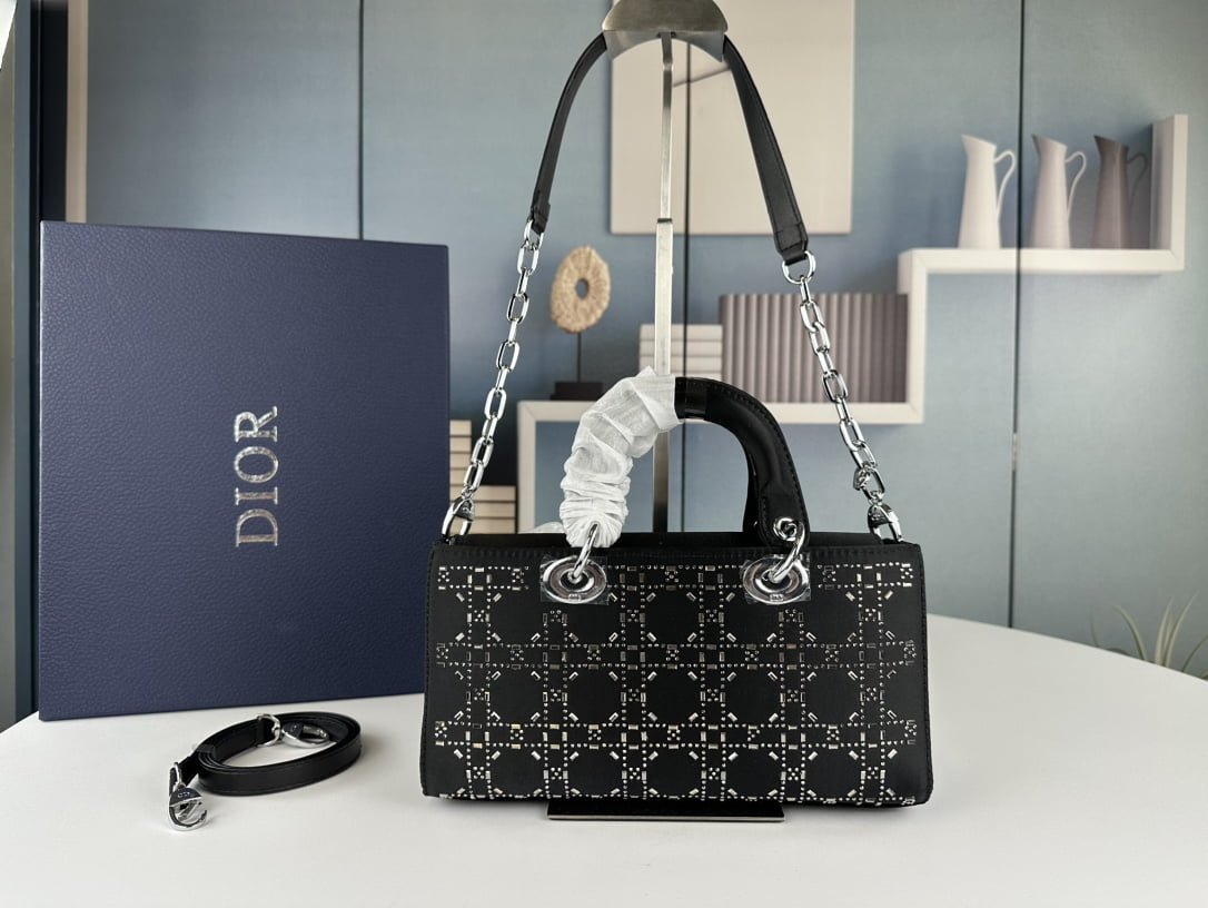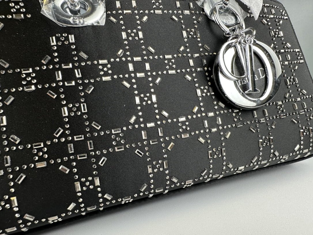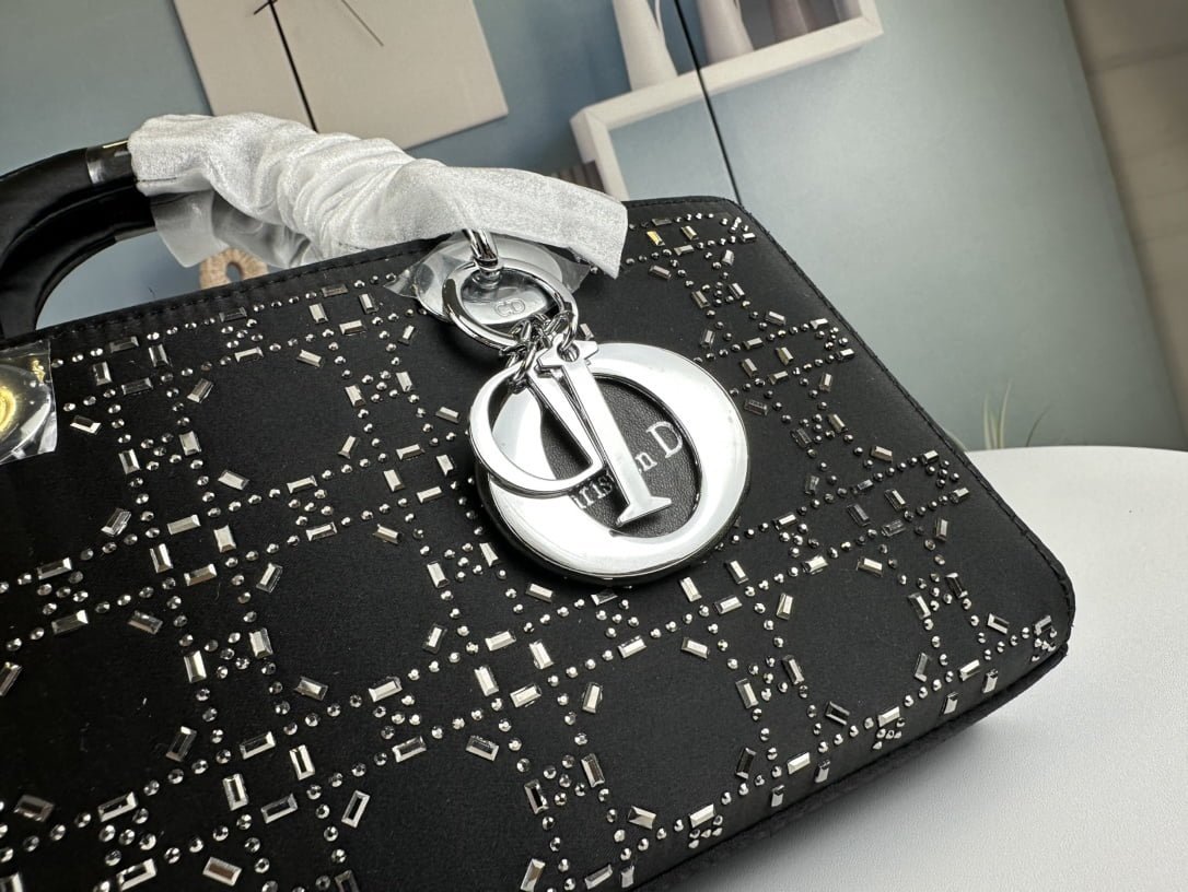Dior satin diamond-encrusted Princess Diana bag black with white 2320 size: 26*13*6cm