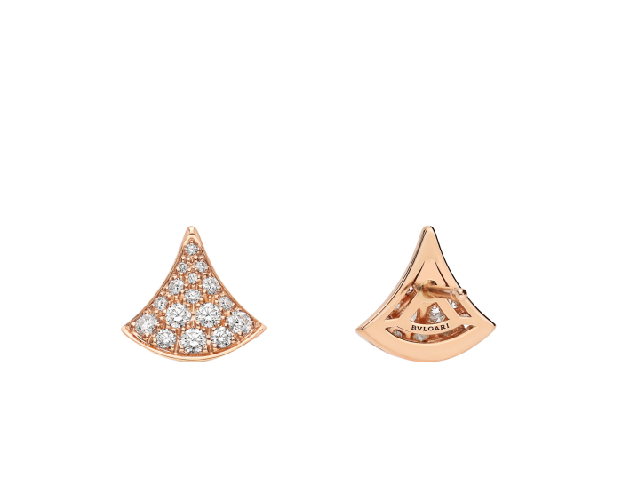 Divas’ Dream series 18K rose gold earrings adorned with inlaid diamonds.