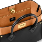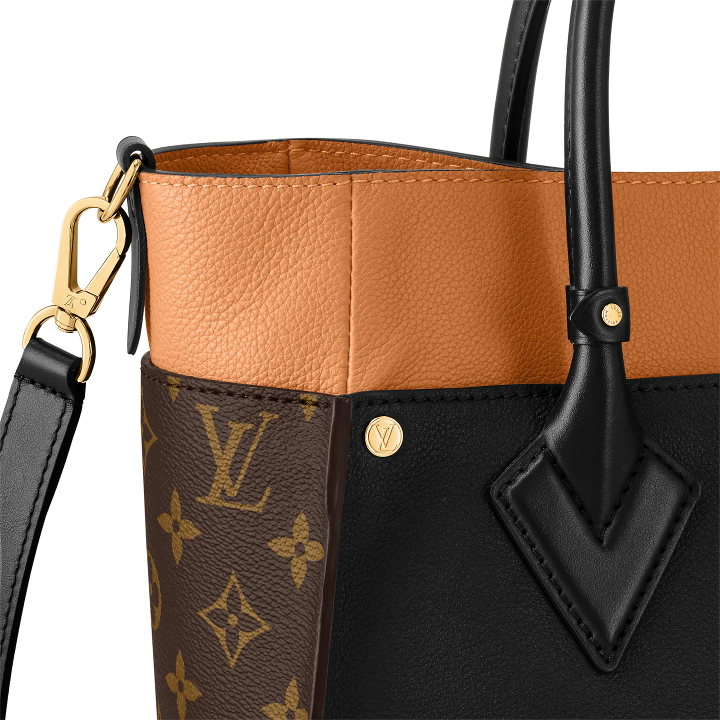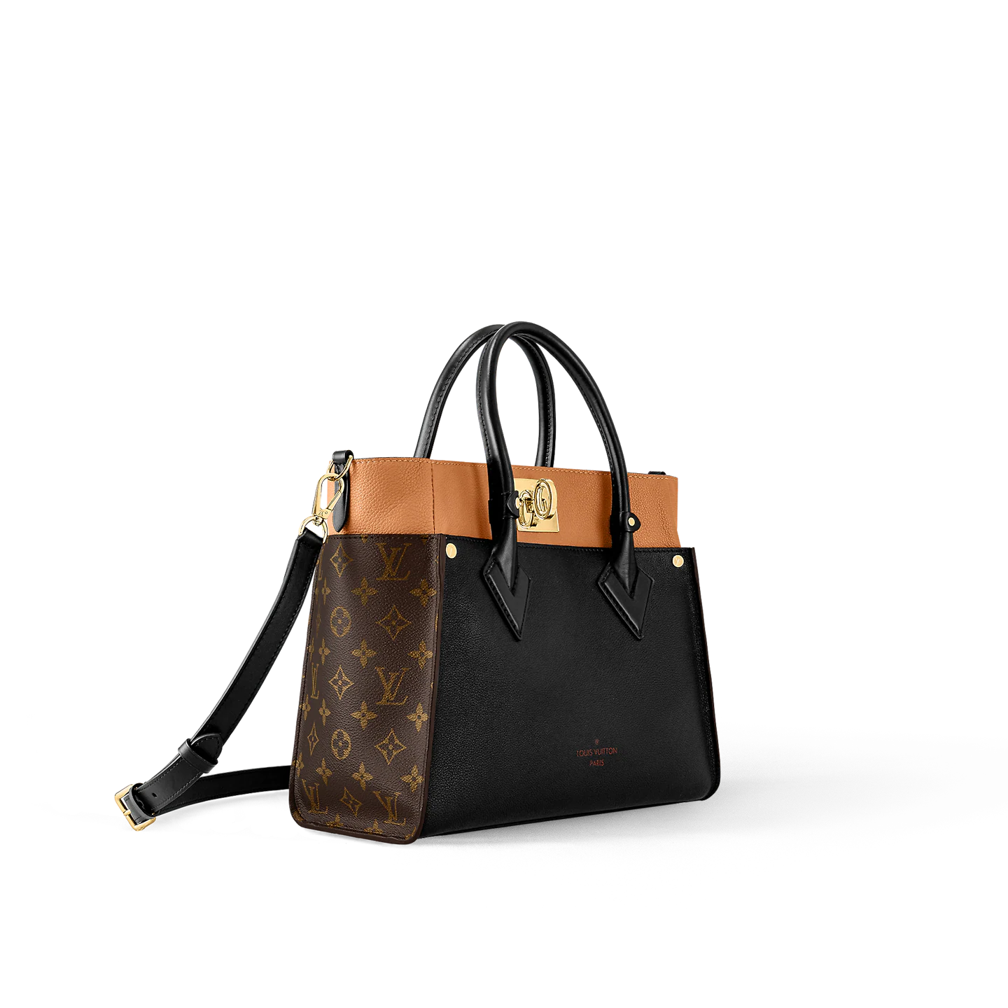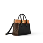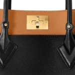 The On My Side MM tote bag is fashioned from an elegant combination of small-grained calf leather and emblematic Monogram canvas. The large outside pockets in contrasting canvas create a bag-in-a-bag look. The roomy interior can easily hold everything needed for a day at the office while the adjustable strap makes for practical cross-body carry.