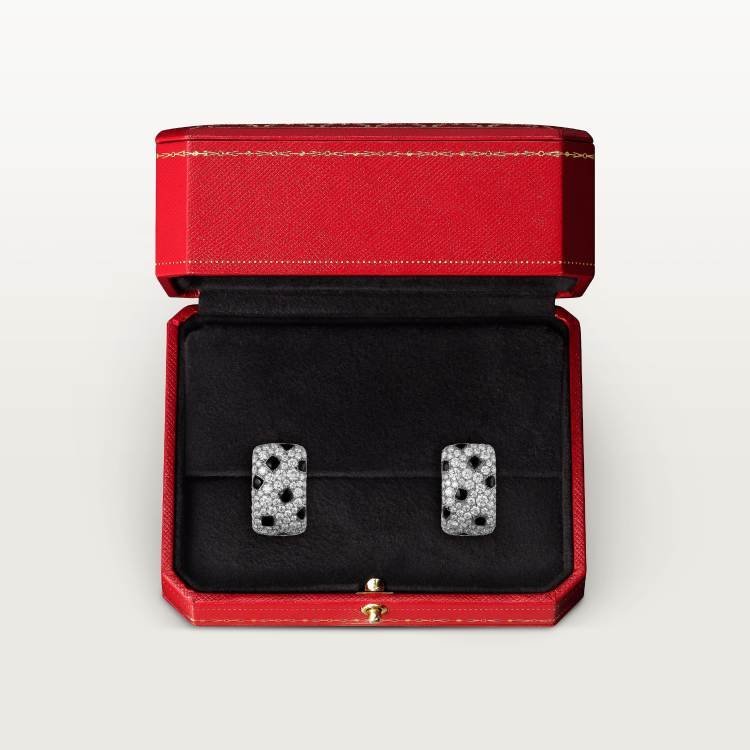 Panth è re de Cartier Cheetah Earrings. made of 750 ‰ white gold and onyx. each earring is set with 84 round brilliant cut diamonds. with a total weight of 1.20 carats.