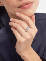 The Serpenti Viper series white 18K gold ring. adorned with semi dense diamonds. cleverly blends pure aesthetics. surround design. and charming charm in its iconic style. succinctly interpreting the endless transformation and iteration of Bvlgari’s classic works. This charming jewelry piece embodies the powerful traits of the mysterious spirit snake constantly evolving. inspiring people to actively seek change and see it as an inexhaustible source of strength and confidence. Suitable for mixing and matching at will. providing a variety of styling options. showcasing the flexible and versatile style of this series.
