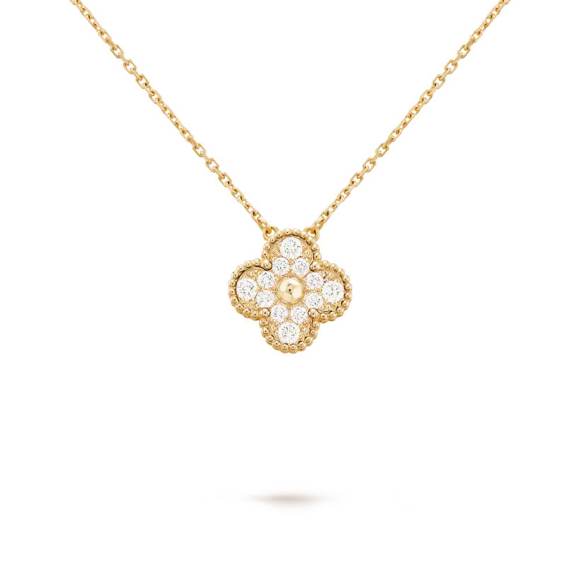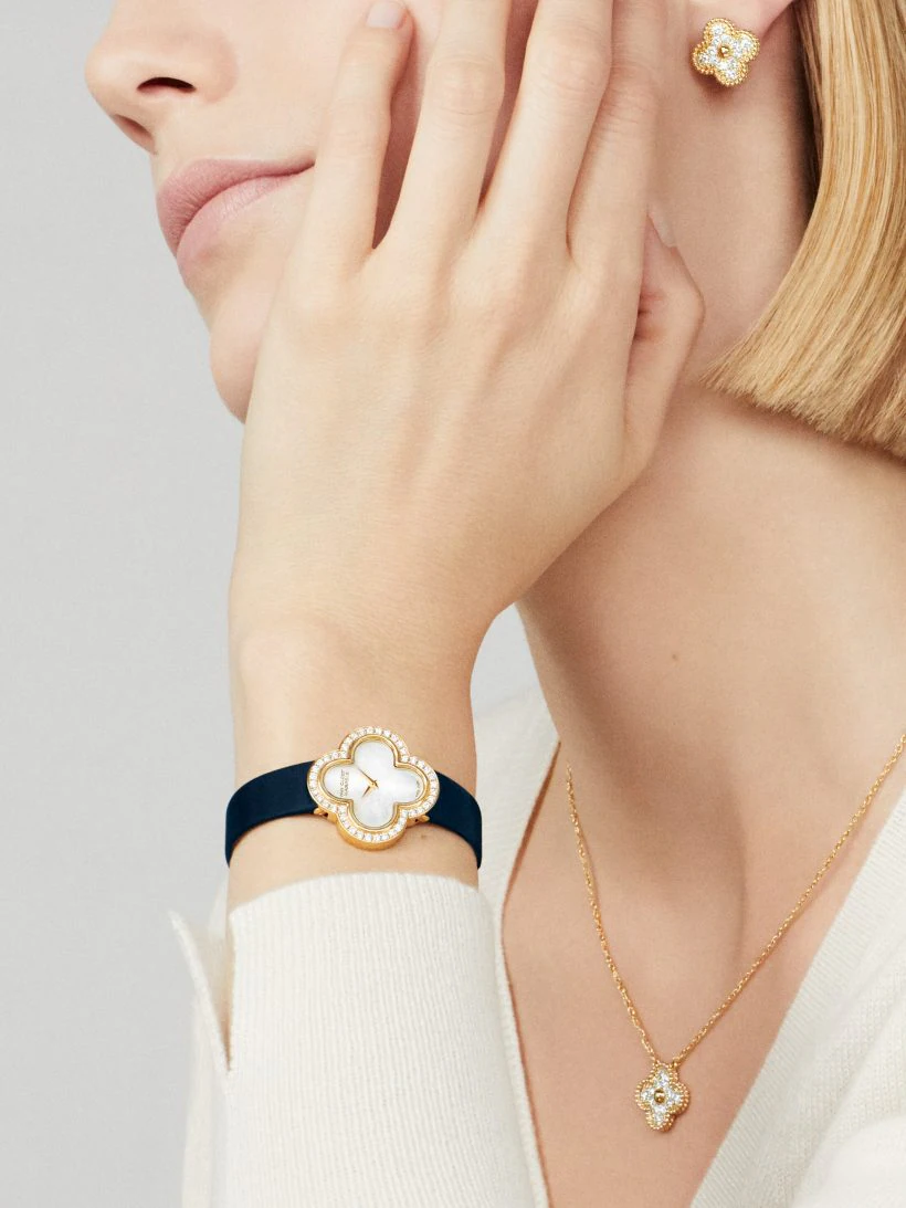 Van Cleef&Arpels’ Vintage Alhambra ® The series faithfully reproduces the first Alhambra jewelry introduced in 1968. with a unique and timeless design that captivates people at first sight. These lucky symbols draw inspiration from the four leaf lucky pattern and are adorned with yellow K-gold round beads.