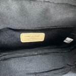 Calfskin forged lining with LAURENT-ENGRAVED metal plaques adorn the zipper. Brush bronze tone metal hardware. Slot pocket shoulder strap vertical: 62 cm