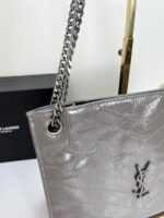 YSL NIKI Wrinkled retro oil wax skin Shoulder and backbody tote bag grey