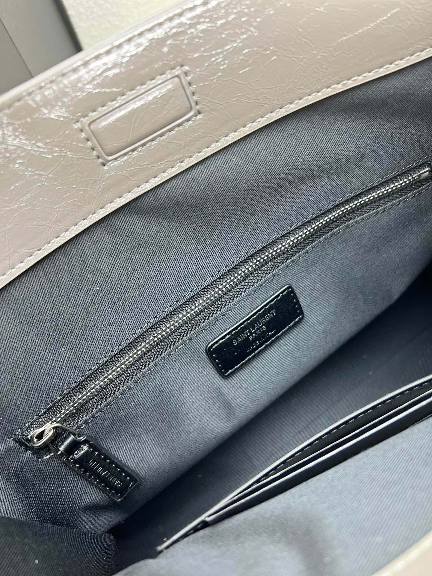 NIKI Shopping Bag Pleated Vintage Oil waxed leather Saint Laurent Tote Bag Upholstered leather-covered YSL initial shoulder Bag 100% calfskin Antique Silver Metal hardware Rolework lining magnetic buckle inside with a zipper pocket